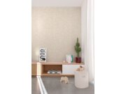Krémová vliesová tapeta s lesklým bílým vzorkem. Tapeta vhodná do dívčího pokojíčku.