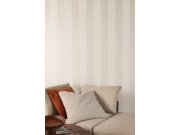 Hladká vliesová tapeta na zeď, pruhy v odstínech matné v barvě slonové kosti a pololesklé šedé. Foto interiéru je pouze ilustrační - odlišné barvy. Pruhy cca 11,8 cm. Co vás zaujme: hodí se do všech typů místností. Design: klasický, grafický. Úroveň tapet