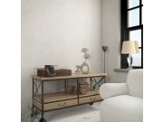 Jemně plastická, matná, bílo-šedá vliesová tapeta s vinylovým povrchem - imitace štukové omítky. Foto interiéru je pouze ilustrační - odlišné barvy.