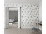 Šedo-černá vliesová tapeta s vinylovým povrchem, vzor květin, hrubší látková textura.