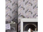Tapety Yara » Tapety dle materiálu » Vliesové tapety » Vliesová tapeta na zeď, šedo-fialová, květiny, pávi, 115253, Laura Ashley 2, Laura Ashley Signature