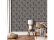 Luxusní vliesová geometrická tapeta s vinylovým povrchem, motiv kostek s tvary, odstíny hnědé, béžové a černé barvy. Foto interiéru je pouze ilustrační - odlišné barvy.