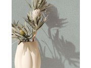 Jemně plastická, matná, šedo-modrá vliesová tapeta s vinylovým povrchem - imitace štukové omítky. Foto interiéru je pouze ilustrační - odlišné barvy.