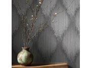 Elegantní geometrická černá vliesová tapeta s vinylovým omyvatelným povrchem a stříbrnými liniemi.