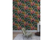 Luxusní květinová vliesová tapeta s vinylovým povrchem v pestrých barvách s metalickými odlesky. Motiv tropických květin a motýlů. Hrubá struktura.
