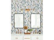 Vliesová tapeta na zeď, tyrkysová, květiny, ptáčci, 113392, Laura Ashley 3, laura Ashley Signature
