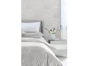 Jemné textury a odlesky vnesou do interiéru eleganci a styl. Pololesklá smetanová tapeta s jemnou texturou, pololesklý, tyrkysový, jemně strukturovaný geometrický vzor se stříbrnými metalickými obrysy.