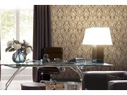 Vliesová tapeta s vinylovým povrchem. Jemně plastický damaškový vzor s metalickými odlesky.