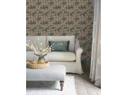 Luxusní plastická vliesová tapeta s vinylovým povrchem, zelený zámecký ornamentální vzor se zlatými třpytkami pod hnědo-béžovou štukovou omítkou. Foto interiéru je pouze ilustrační - odlišné barvy.