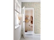 Vliesová tapeta na zeď, jemně plastický proužkový podklad v odstínech béžové, pastelově zelené drobné listy. Co vás zaujme: jemná textura. Design: přírodní. Úroveň tapetování: pro začátečníky. Země původu: Holandsko.