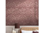 Jemně plastická, starorůžová pololesklá vliesová tapeta s vinylovým povrchem - motivy rozkvetlých větviček a ptáčků v odstínech vínové, béžové, zelené a zlaté. Foto interiéru je pouze ilustrační - odlišné barvy.