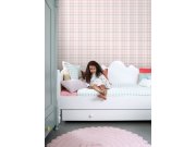 Vliesová tapeta na zeď, vzor káro v odstínech růžové, šedé a bílé.
