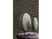 Vliesová tapeta imitace leopardí kůže. Jemně plastická textura v odstínech okrové, hnědé a šedé, místy metalické bronzové odlesky.