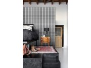 Vliesová tapeta na zeď, vzor káro v odstínech šedé, černé a bílé.