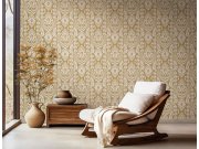 Luxusní zlato-béžová vliesová tapeta s vinylovým povrchem, zlatý zámecký vzor. Foto interiéru je pouze ilustrační - odlišné barvy.