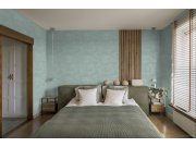 Zelená vliesová tapeta na zeď s vinylovým povrchem se vzorem imitace štuku. Tapeta je matná.