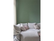 Zelená vliesová tapeta s vinylovým povrchem, zámecký vzor, látková textura. Foto interiéru je pouze ilustrační - odlišné barvy.
