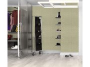 Jemně plastická zelená vliesová tapeta na zeď, krémové flíčky.