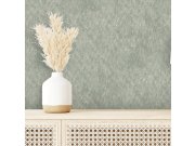 Vliesová, zeleno-šedá tapeta imitace kůže.