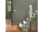 Vliesová tapeta na zeď, látková textura, odstíny tmavě zelené - mat, metalické akcenty. Co vás zaujme: věrnost imitace látky. Design: rustikální, nadčasový. Úroveň tapetování: začátečník. Země původu: Belgie.