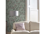 Tapety Yara » Tapety dle materiálu » Vliesové tapety » Vliesová tapeta na zeď, zelená, květiny, ptáčci, 113371, Laura Ashley Signature