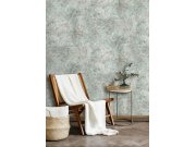 Vliesová tapeta imitace látky v zelených, šedých a hnědých odstínech.