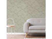 Jemně strukturovaná zelená vliesová tapeta na zeď, hladké stříbrné listy a květiny.