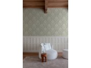 Vliesová tapeta na zeď s vinylovým povrchem se zámeckým ornamentálním vzorem v zelených odstínech.