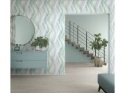 Vliesová tapeta na zeď s vinylovým povrchem v zelených a modrých odstínech s pruhy.