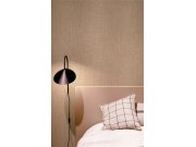 Luxusní vliesová tapeta s vinylovým povrchem, hnědo-zlatý pololesk, plastická látková texura. Foto interiéru je pouze ilustrační - odlišné barvy.