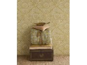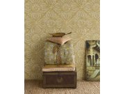 Vliesová tapeta s damaškovým vzorem, béžový podklad okrový vzor.