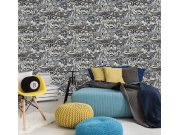 Luxusní vliesová tapeta s vinylovým povrchem, motiv listů, odstíny béžové, hnědé, černé a modré. Foto interiéru je pouze ilustrační - odlišné barvy.