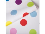 1 KS SKLADEM. Vliesová hladká bílá tapeta s barevnými puntíky,.