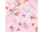 Romantický design vnese do interiéru klid a uvolnění. Rozkvetlé větvičky a motýlci na růžové vliesové tapetě.