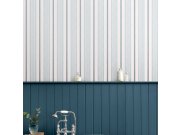 Vliesová tapeta s modrými pruhy na bílém hladkém podkladu vnese do interiéru příjemnou atmosféru.