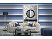 Vliesová tapeta s vinylovým povrchem - efektní pruhy v odstínech bílé a modré s jemným metalickým leskem a jemně plastickou texturou. Pruhy na tapetě jsou tištěny vertikálně, lepení horizontálně nabízí další alternativu dekorativního efektu. Snadno zkombi