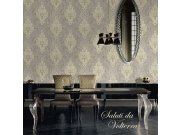 Vliesová tapeta s vinylovým povrchem. Jemně plastický damaškový vzor s metalickými odlesky.