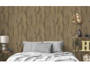 Vliesová tapeta na zeď, imitace dřeva v odstínech metalické hnědé, okrově-zlaté a stříbrné.