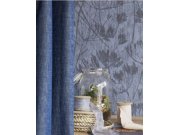 Rostlinné motivy na matné modré jemně žíhané vliesové tapetě na zeď.
