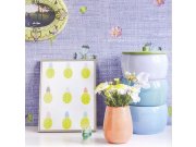 Vliesová tapeta s proužkovým vzorem ve žlutých, růžových a fialových odstínech.
