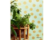 Puntík vnese do vašeho interieru nový rozměr a originalitu. Hnědo-béžové jemně plastické puntíky se zlatými třpytkami na mentolovém podkladu.
