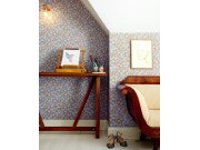 Drobné kytičky v hnědé a béžové barvě na vliesové tapetě.