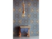 Vliesový tapetový panel Luxusní tyrkysový vzor s jemným perleťovým leskem na tmavě hnědém podkladu.