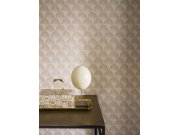 Vliesová tapeta s vinylovým povrchem na zeď s jemným geomegrickým vzorem a hrubší látkovou texturou v béžové barvě, vzor jemně metalický pololesk. Podklad vlies, povrch vinyl.