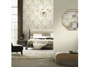 3 KS SKLADEM. Role šíře 1,06m. Metalické odlesky a výrazné textury dodají vašemu interiéru luxus a styl. Podklad výrazně plastická pololesklá krémovo-béžová textura s jemnými odlesky, béžové ornamentální vzory s metalickými odlesky.