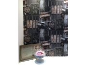Retro motivy francouzských podniků v šedé a hnědé barvě na vliesové tapetě.