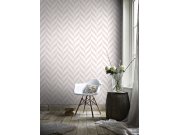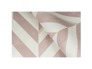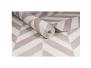 Elegantní bílo-růžový geometrický vzorek s jemnými metalickými linkami na vliesové tapetě.