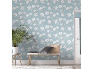 Vliesová nebesky modrá tapeta na zeď - větvičky kvetoucí magnólie.