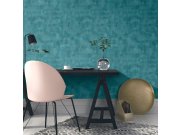 Jemně plastická textura, žíhání a struktury vytváří nepravidelný obdélníkový vzor. Odstíny pololesklé šedé, stříbrné, tyrkysové a béžové, metalické odlesky. Vliesová tapeta s vinylovým povrchem.