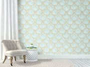 Šíře role 1,06m. Vliesová tapeta s vinylovým povrchem. Design tapety - jemně plastická, historická štuková omítka různých struktur v odstínech tyrkysové a perlové, bohatý zlatý zámecký vzor. . Snadno zkombinujete se souvisejícími tapetami.